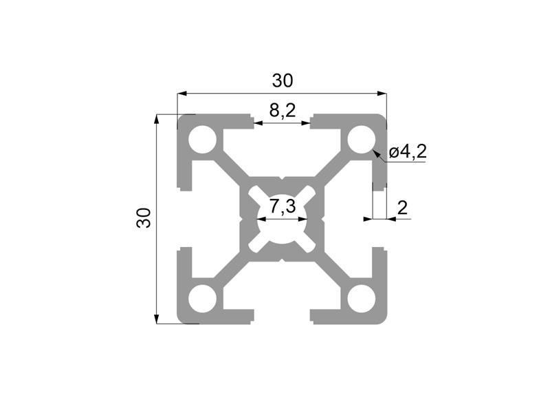 996036Hliníkový profil K3030EN 573-3 AW 6060 T66 EN 755-1,2,96000